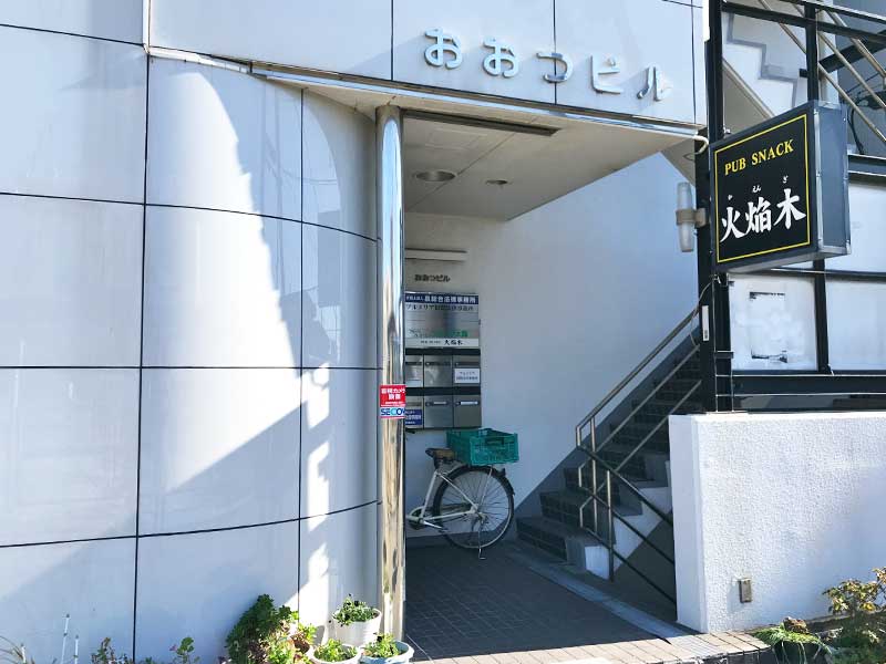 階段を下りて外に出ると、正面に「おおつビル」というビルがあります。